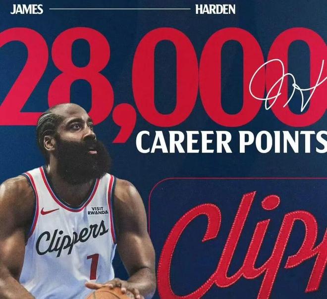 此外,哈登还突破了生涯28000分大关!